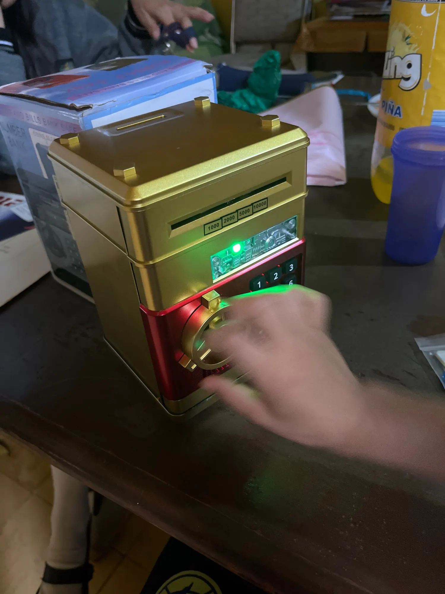 Certo, in cima è dotato di una fessura per poterci inserire qualsiasi tipo di moneta.